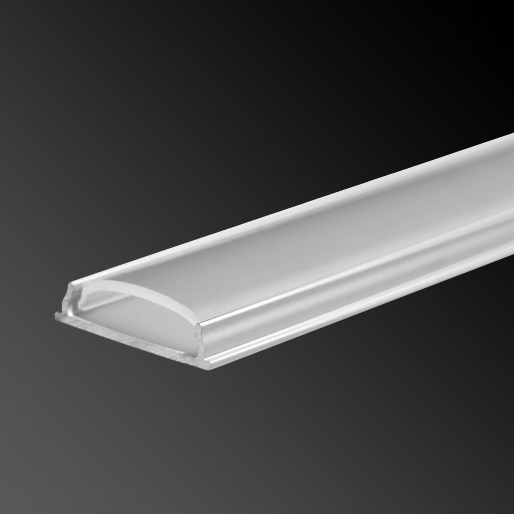 When used with our LED flexible strip, this aluminium profile creates a finished light fitting providing a more attractive light where on display and also offering protection for the LED. The aluminium channel is supplied with two end caps, two mounting clips and has a frosted cover, 1m lengths available online and we are able to offer a cut-to-length service to make bespoke lengths as required, please contact us direct to place the order.