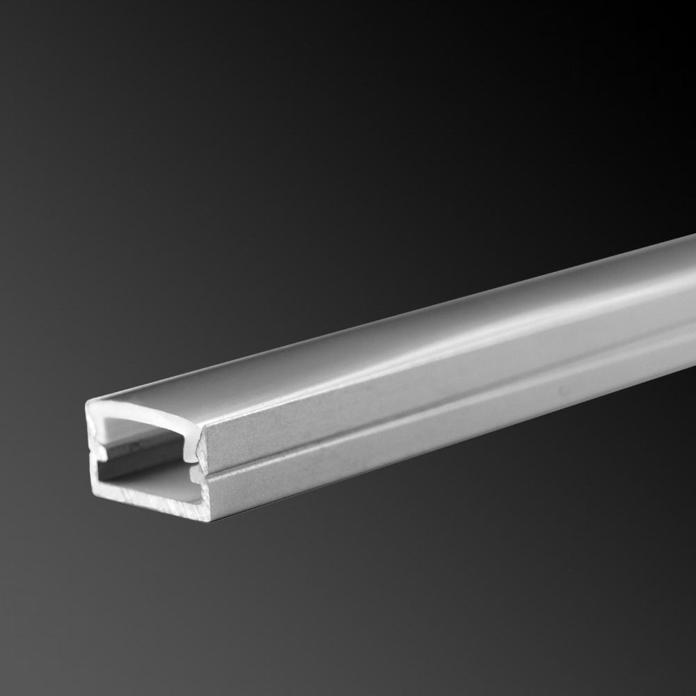When used with our LED flexible strip, this aluminium profile creates a finished light fitting providing a more attractive light where on display and also offering protection for the LED. The aluminium channel is supplied with two end caps, two mounting clips and has a frosted cover, 1m lengths available online and we are able to offer a cut-to-length service to make bespoke lengths as required, please contact us direct to place the order.