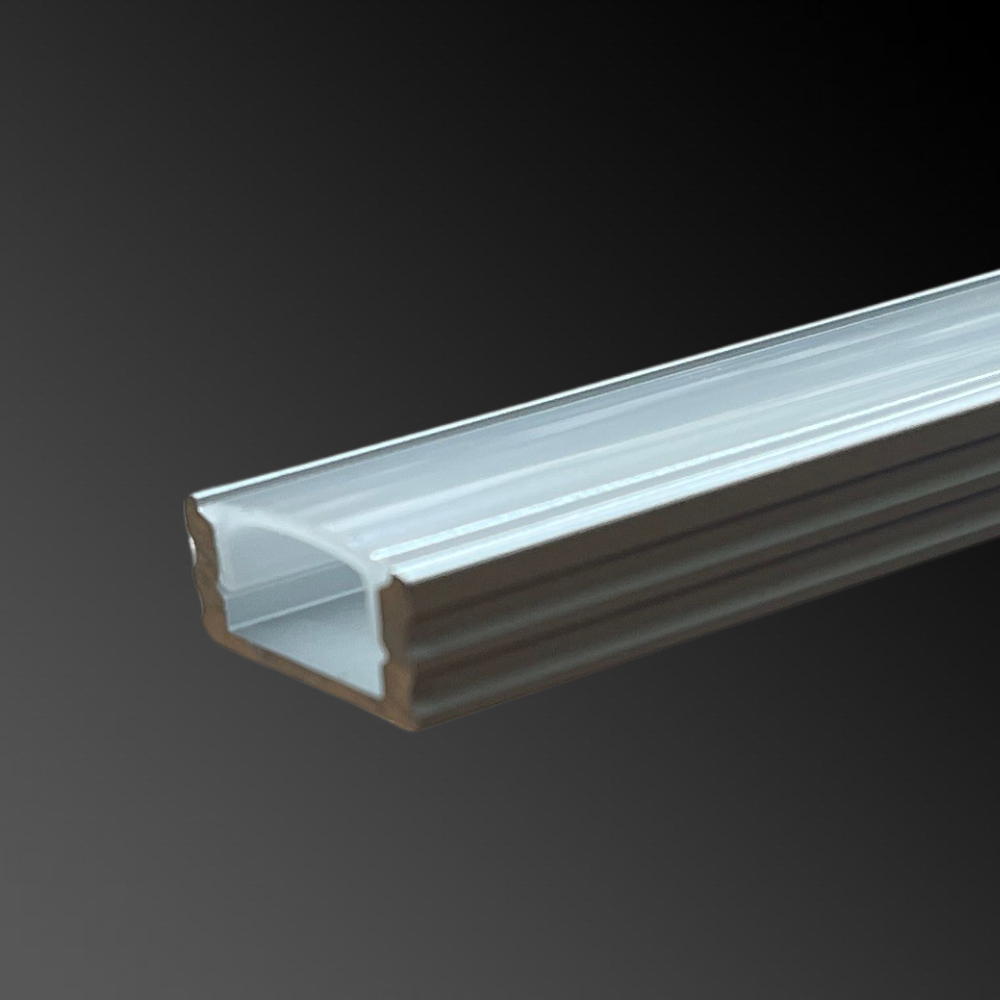 When used with our LED flexible strip, this aluminium profile creates a finished light fitting providing a more attractive light where on display and also offering protection for the LED. The aluminium channel is supplied with two end caps, two mounting clips and has a frosted cover, 1m lengths available online and we are able to offer a cut-to-length service to make bespoke lengths as required, please contact us direct to place the order.