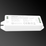 Mi-Light controller to operate 12V or 24V CCT (adjustable white colour temperature adjustment) LED via a suitable remote. Suitable for use with our 12V and 24V CCT adjustable white LED lighting. Just connect a the incoming power supply to the input side of the unit and connect your CCT LED to the output of the unit and when synchronised to your remote control the unit can then be used to change LED colour temperature from warm white through to cool white.