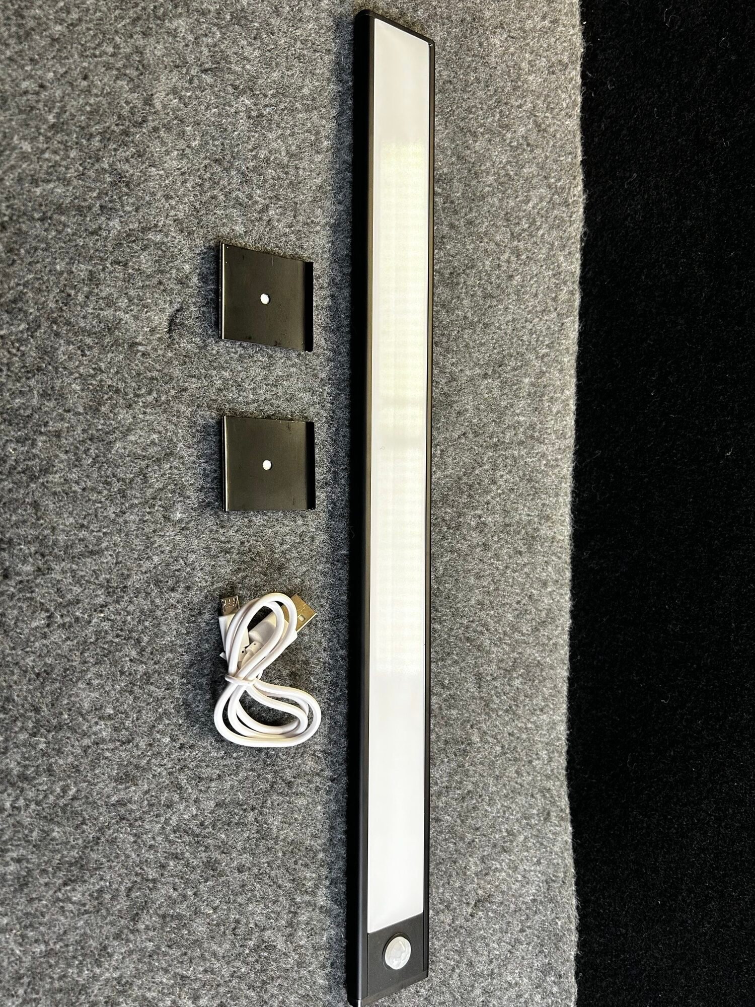 THe PIR light comes complete with a USB lead to enable swift recharging. There are two magnetic mounting brackets (3M tape on rear or can be screwed to suitable surface) to enable easy removal of light to chrage when required.